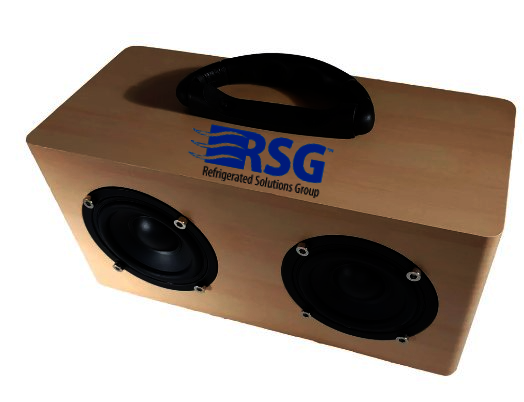 The El Hefe is a wireless speaker with a boom box look and feel. With a full customized wrap, you can have your logo visible on every side. A carry handle is included, for easy travel.