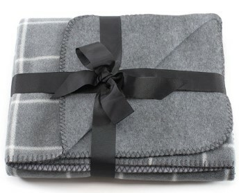 70% polyester / 30% viscose; Packaging: Wrapped with black twill ribbon; Luxurious reversible throw with two-tone style. ; A unique fabric that imitates the feel and texture of soft wool; Complete with whipstitched edge for a quality finish.; 50" x 60";